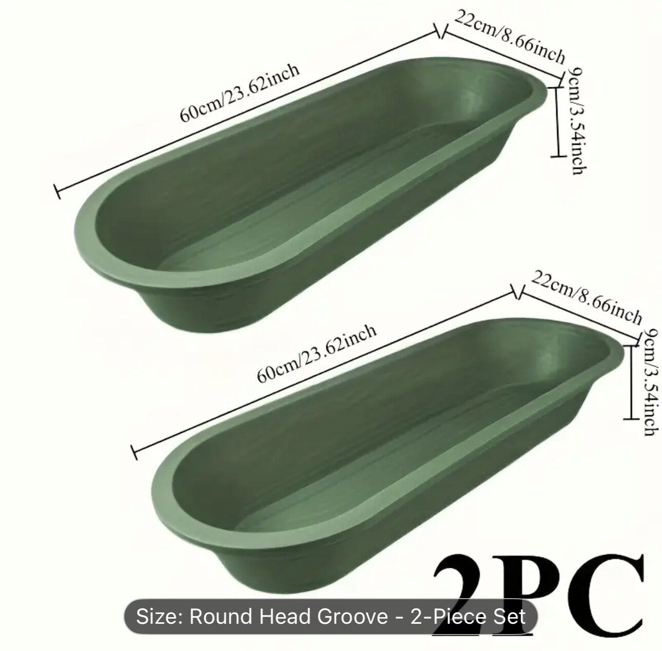 Green poultry feeding trough, two piece set